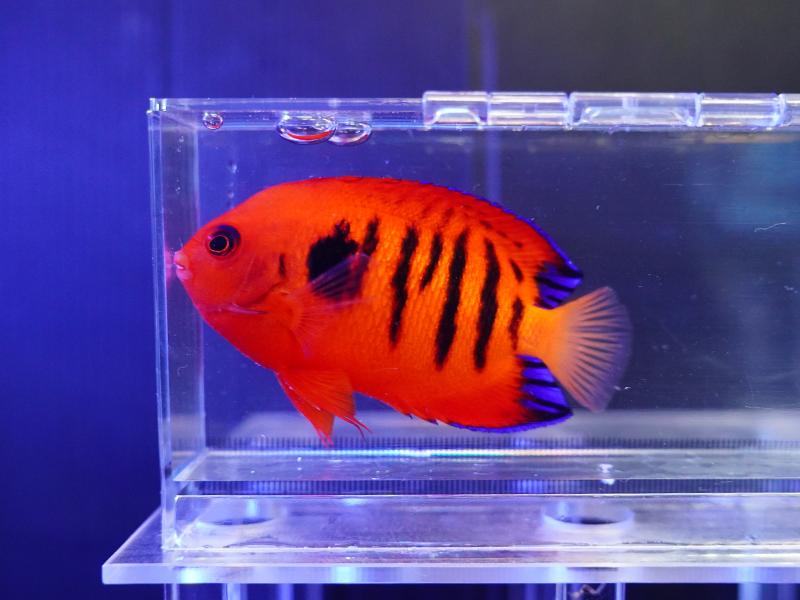説明:サンゴ水槽での飼育OK。丈夫で飼育しやすい小型ヤッコ。個体によって赤色具合や黒バンドの太さ・本数が変わるため自分好みの個体選びが可能です。