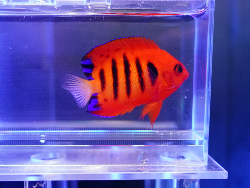 説明:サンゴ水槽での飼育OK。丈夫で飼育しやすい小型ヤッコ。個体によって赤色具合や黒バンドの太さ・本数が変わるため自分好みの個体選びが可能です。
