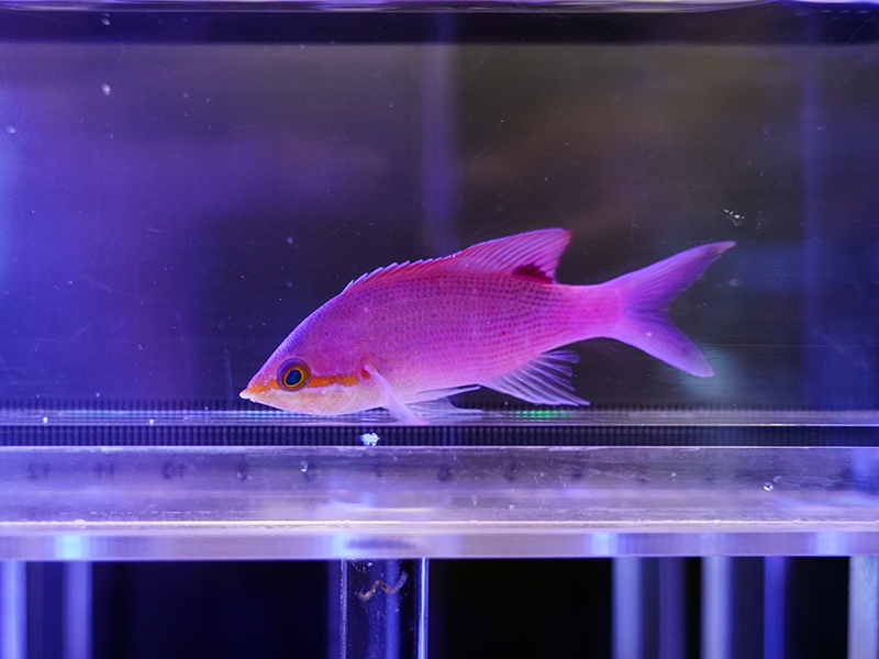 説明:鮮やかな紫が美しいハナゴイの仲間です。性格はやや臆病で単独飼育だと岩に隠れたまま出てこなくなってしまいます。複数飼育推奨。餌付けはやや難しく冷凍餌を中心に、滞留時間の長い軽くて細かな餌を与えていくのが良いでしょう。