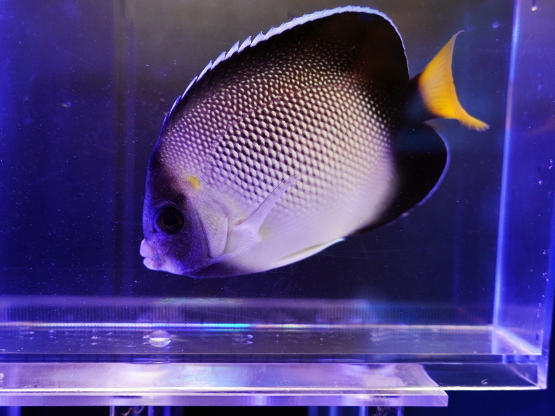 説明:性格も大人しいので混泳させやすい中型ヤッコ。別名インディアンイエローテールエンゼル。