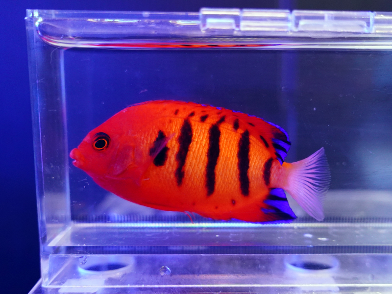 説明:サンゴ水槽での飼育OK。丈夫で飼育しやすい小型ヤッコ。個体によって赤色具合や黒バンドの太さ・本数が変わるため自分好みの個体選びが可能です。
