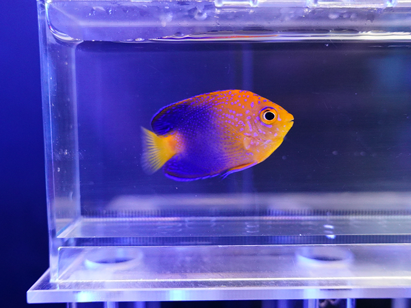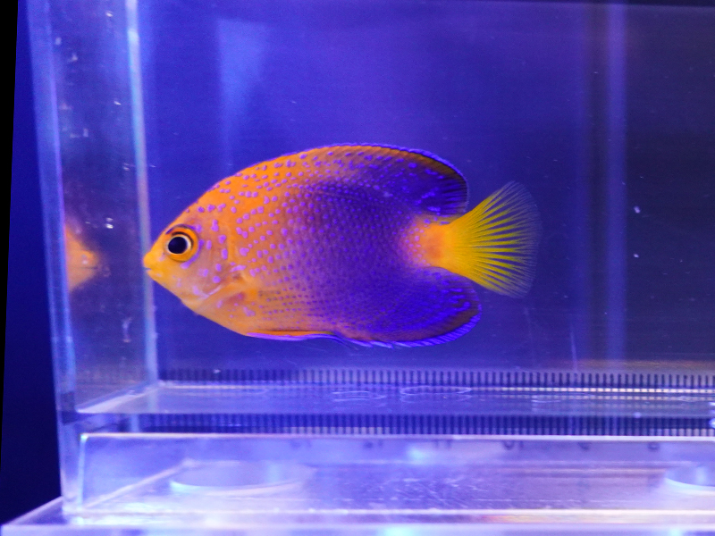 説明:日本近海や台湾などにのみ生息している希少なヤッコです。最大で15cmほどに成長します。