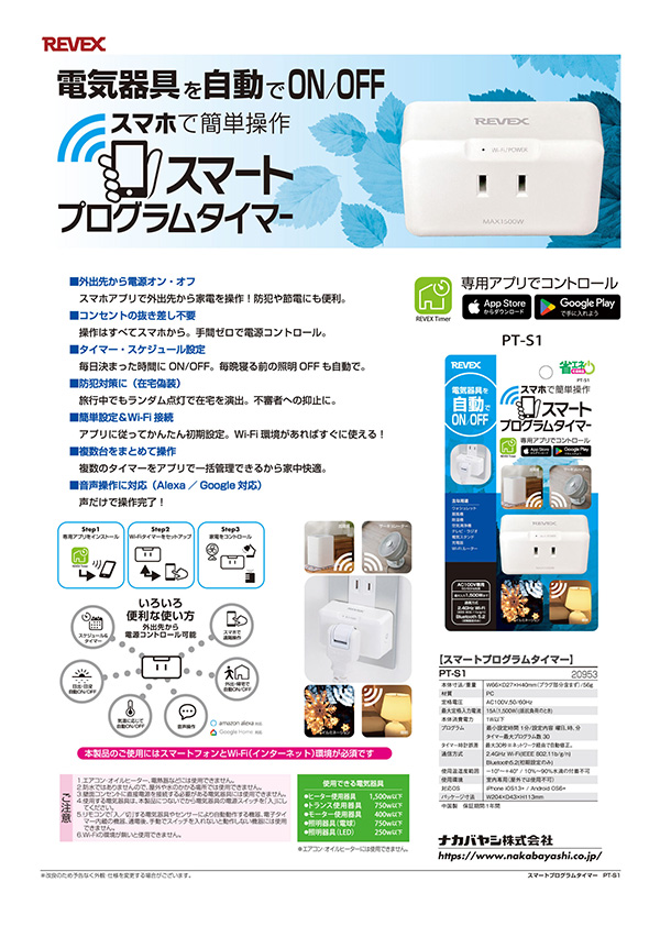 モード:カウントダウン , スケジュール , インターバル , ランダム , 切り忘れ防止 , 日の出/日の入り , ON/OFF操作