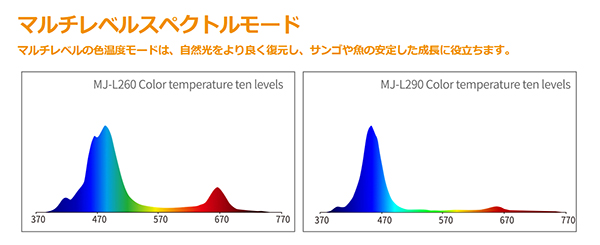 マルチレベルの色温度モードは、自然光をより良く復元し、サンゴや魚の安定した成長に役立ちます。