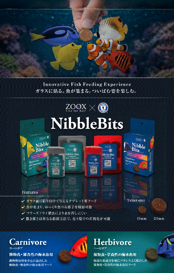 海水魚に適したタブレットタイプのフードで、100%ナチュラルなフリーズドライ原料を使用。